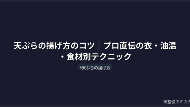 天ぷらの揚げ方のコツをプロの技から徹底解説。衣の作り方、油の温度管理、食材別の揚げ時間まで、初心者でも失敗しない方法を紹介。