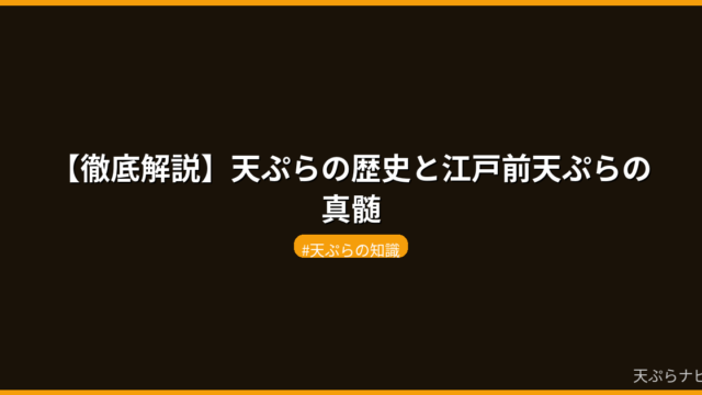天ぷらの歴史を室町時代のポルトガル伝来から江戸前天ぷらの確立、現代まで徹底解説。江戸前の定義・技法・食材の変遷を紐解く。