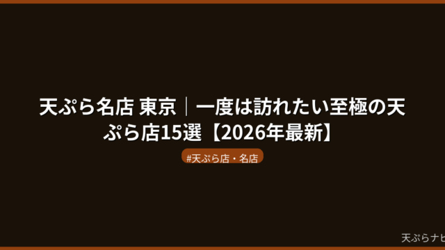 天ぷら名店 東京|一度は訪れたい至極の天ぷら店15選【2026年最新】