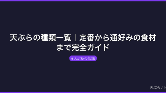 天ぷらの種類を魚介・野菜・肉・変わり種まで50種以上網羅。旬の時期・カロリー・揚げ方まで一覧表で解説。3月の旬食材情報つき保存版ガイド。