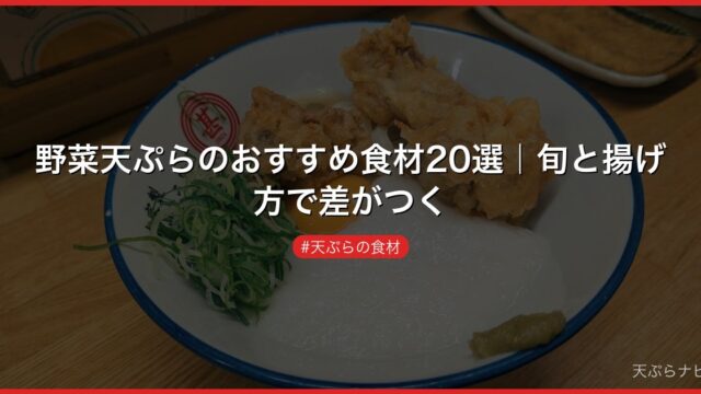 天ぷらの食材 野菜天ぷらのおすすめ食材20選|旬と揚げ方で差がつく 野菜天ぷらにおすすめの食材を定番から変わり種まで20種厳選。旬の時期・揚げ温度・衣のコツを食材別に徹底比較します。 2026.03.24 天ぷらの食材