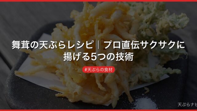 天ぷらの食材 舞茸の天ぷらレシピ|プロ直伝サクサクに揚げる5つの技術 舞茸の天ぷらをサクサクに揚げるプロの技術を5ステップで解説。衣の配合・油温管理・揚げ時間の目安から栄養を逃さない調理法まで完全網羅。 2026.04.21 天ぷらの食材